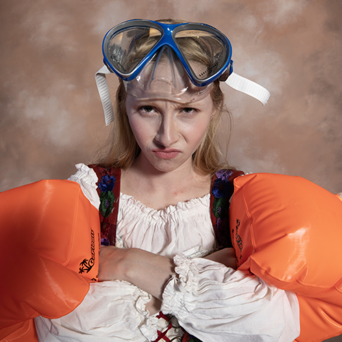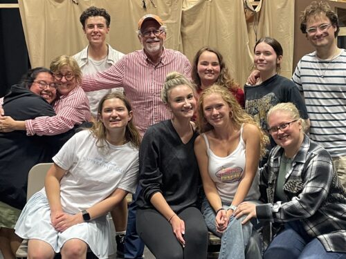 RSC artistic directors Reed Martin and Austin Tichenor are directing college productions of their comedies William Shakespeare’s Long Lost First Play (abridged) and The Comedy of Hamlet! (a prequel), and they discuss the differences they discover in their scripts when other actors are performing them. Reed and Austin share how different actors bring different energies; the difference between a vaudeville and a play; how directing these young actors is like looking in a mirror; and how certain things just aren’t necessary when you cast more than three actors. (Length 19:37) (PICTURED: Josie Porter as Ophelia in the Santa Rosa Junior College production of The Comedy of Hamlet! (a prequel) (above), and the cast and crew of the Creighton University production of William Shakespeare’s Long Lost First Play (abridged).)